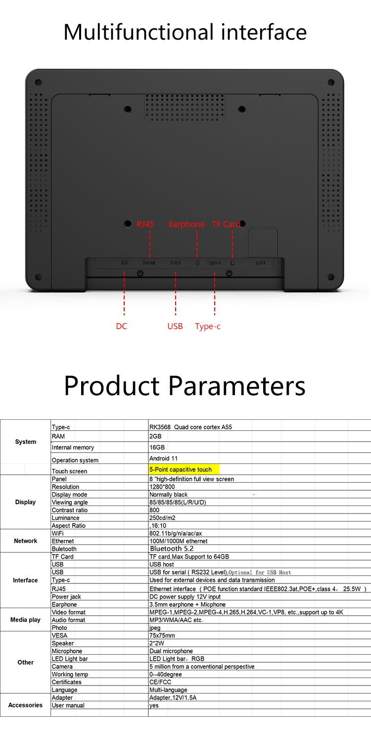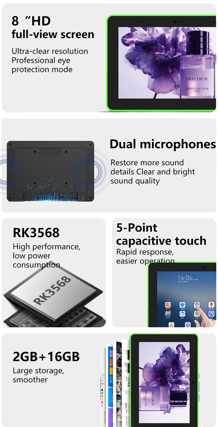 This tablet isn’t just a display—it’s an efficient business tool. By integrating POE, NFC, and a high-performance processor, it ensures smooth operation and reduced overhead for your business. Whether for customer-facing displays or internal operations, this tablet provides a customizable solution that adapts to your business’s unique needs.